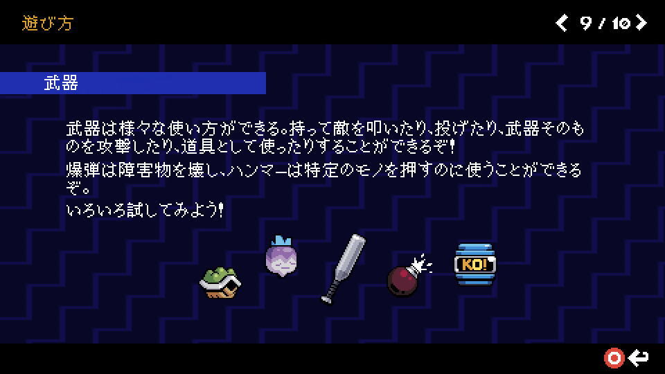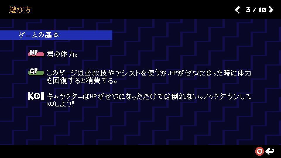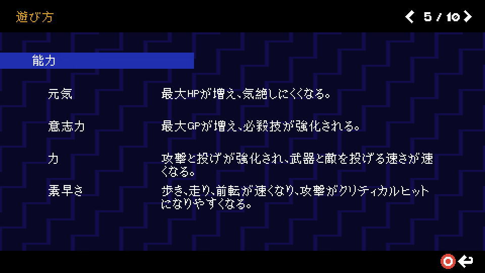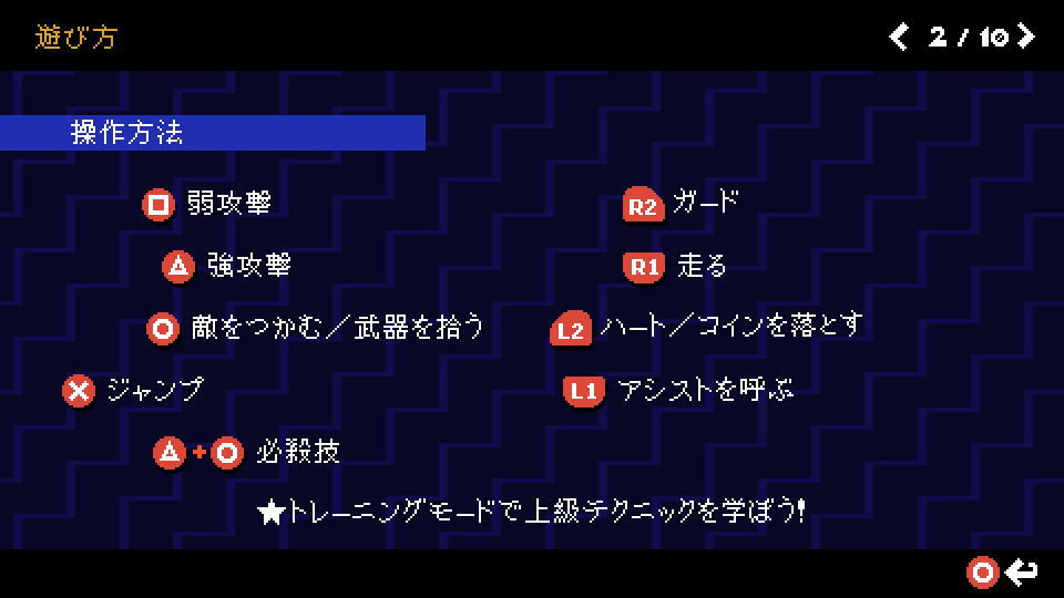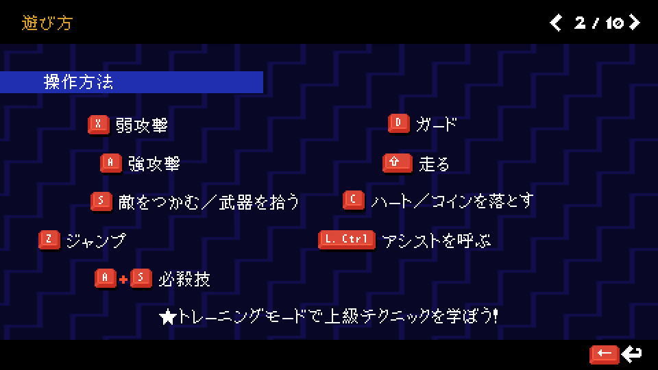 Scott Pilgrim EXの遊び方は、前述した「操作方法」を確認する画面で確認できます。