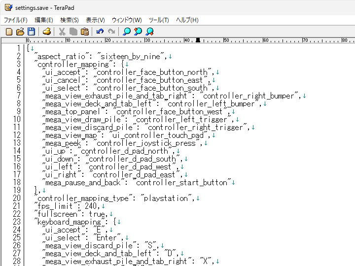もし見当たらない場合は、検索ソフト「Everything」を利用するなどして「settings.save」を見つけます。