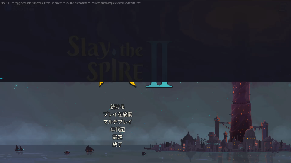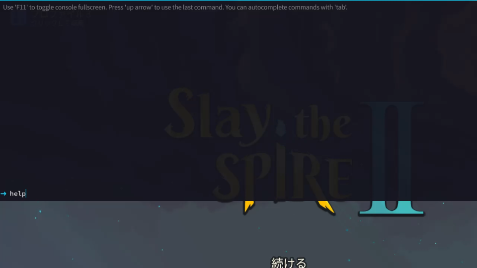 Slay the Spire 2が起動したら「Shift + 8」を押すと、目的のコンソールが起動します。