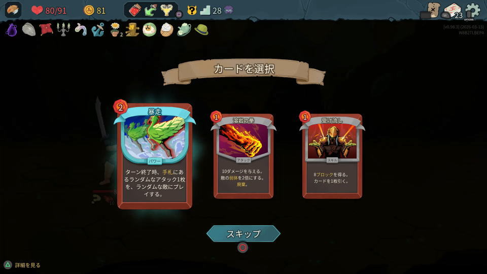 画面下部はSlay the Spire 2の中でも最も項目が多いです。