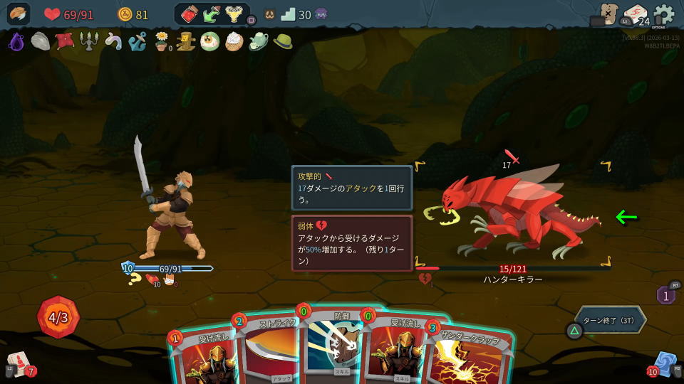 Slay the Spire 2で最も重要な情報は「操作しているキャラクターと敵の状態」です。