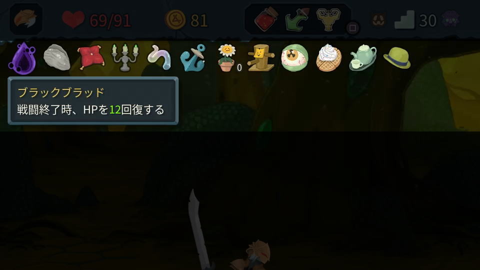 前述したライフやゴールドの直下に配置されているアイコンが、パッシブスキルの「レリック」です。