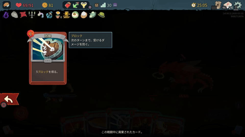 デッキに含まれている弱いカードや戦闘中に受けたデバフを、優先的にここへ送れると有利です。