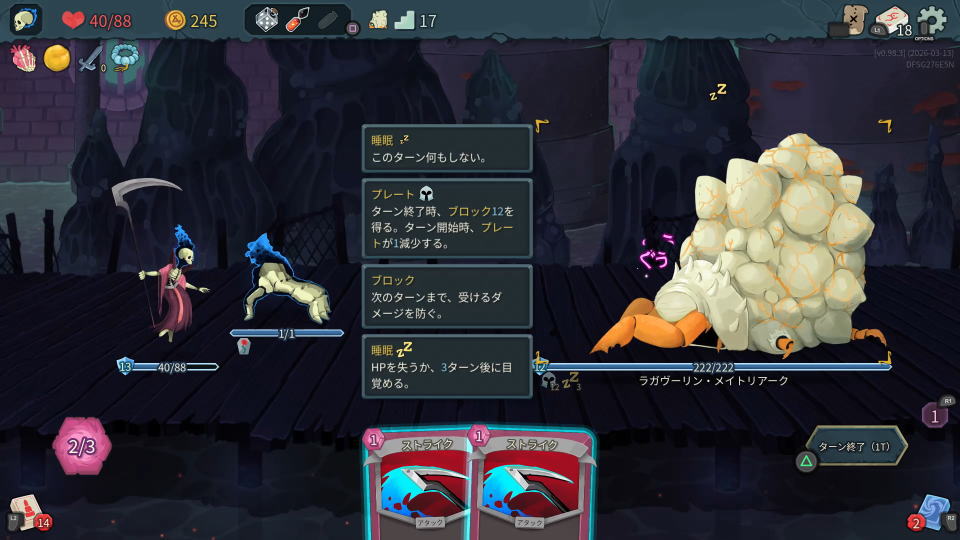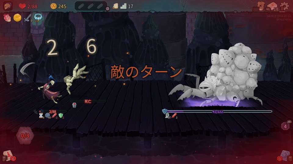 🪦破滅 ⇒ 敵のターン終了時、対象のHPが破滅の蓄積値以下の場合、即死する