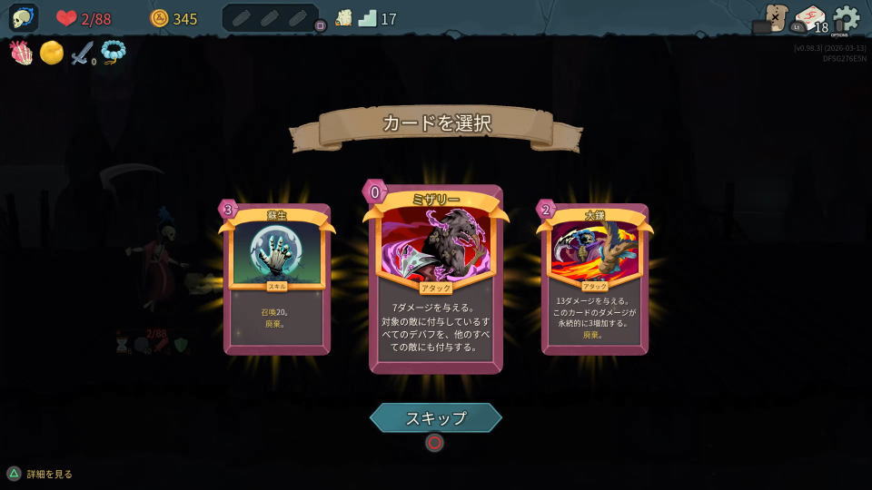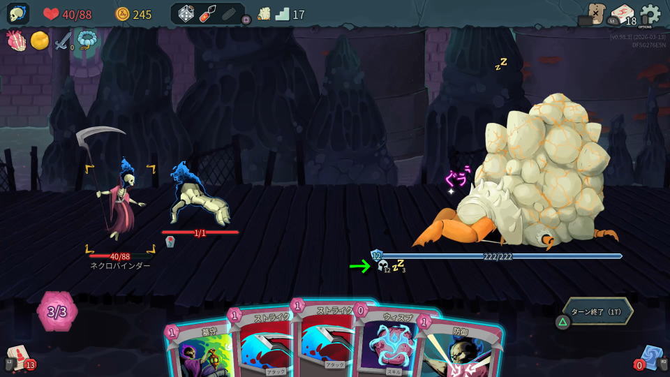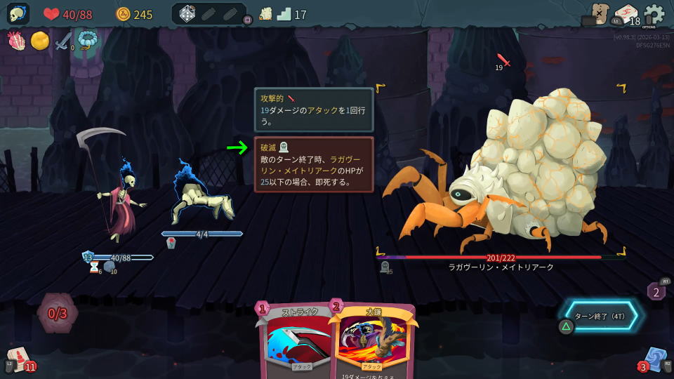 この周回ではキャラクターに「ネクロバインダー」を選択していたため、破滅で倒すことにしました。