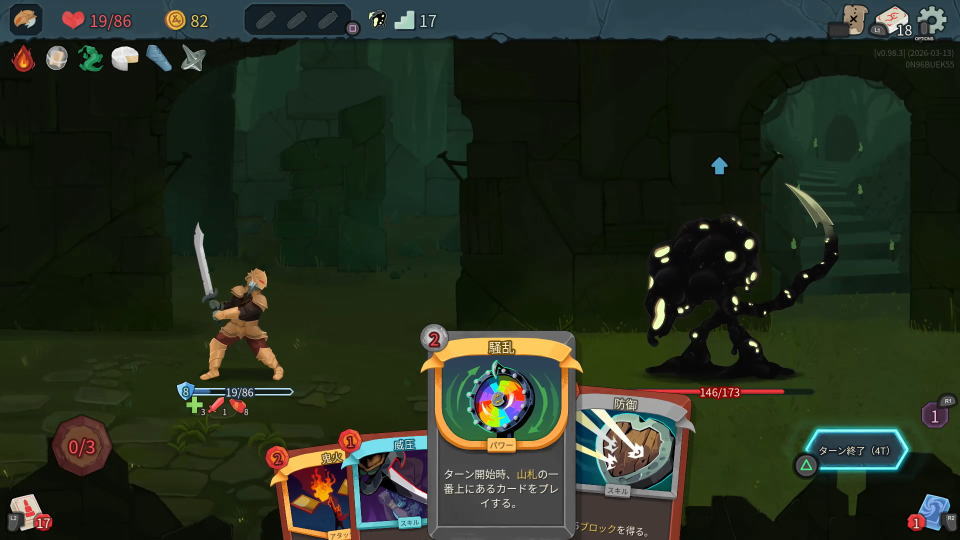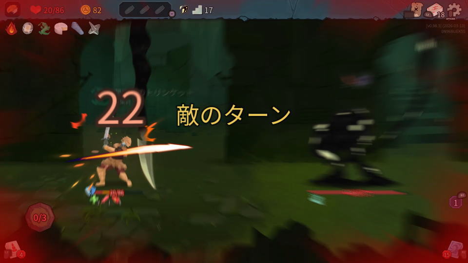 | 4ターン | 強化:バフ(筋力+2)を使用する |