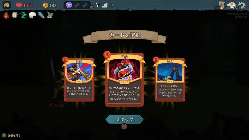 ヴァントムの討伐時に選択肢として現れたカードのサンプルです。