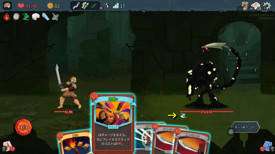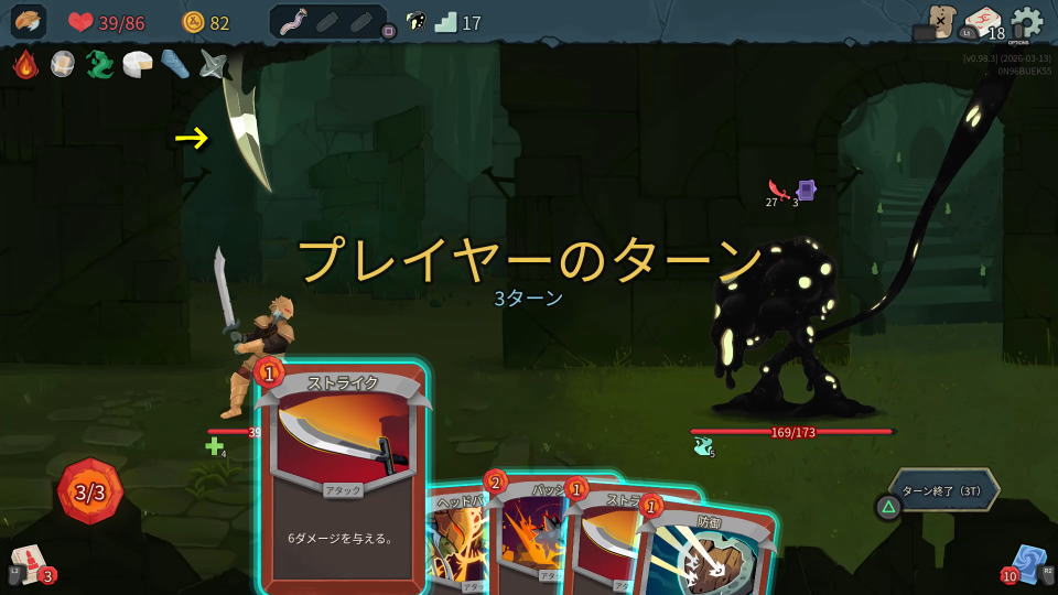 | 8ターン | 強化:バフ(筋力+2)を使用する |
