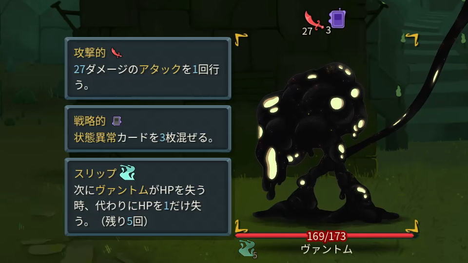 ヴァントムの攻略で注意すべきポイントは、最初から付与されている「スリップ」です。