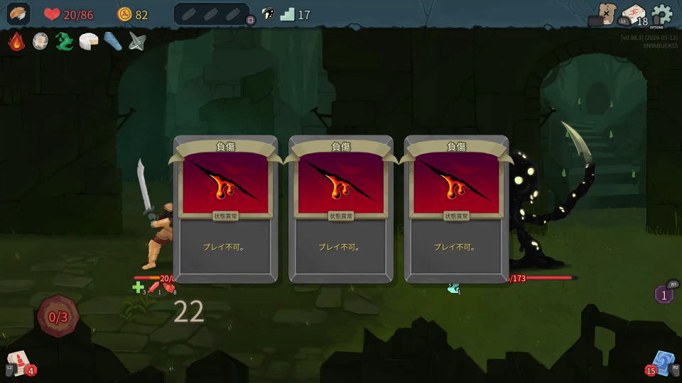 | 3ターン | 27ダメージ:27ダメージのアタックを1回行う 戦略的:状態異常カード(負傷)を3枚混ぜる |