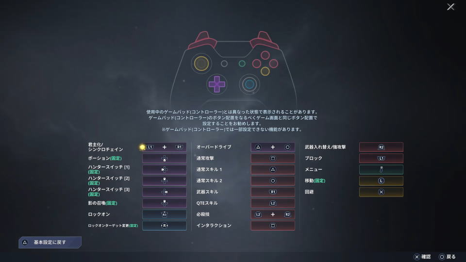 レベルアップな件:ARISE OVERDRIVEの「コントローラー設定」です。