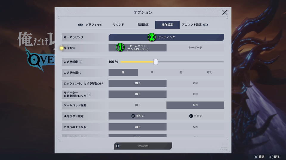 俺だけレベルアップな件:キーボードとコントローラー設定