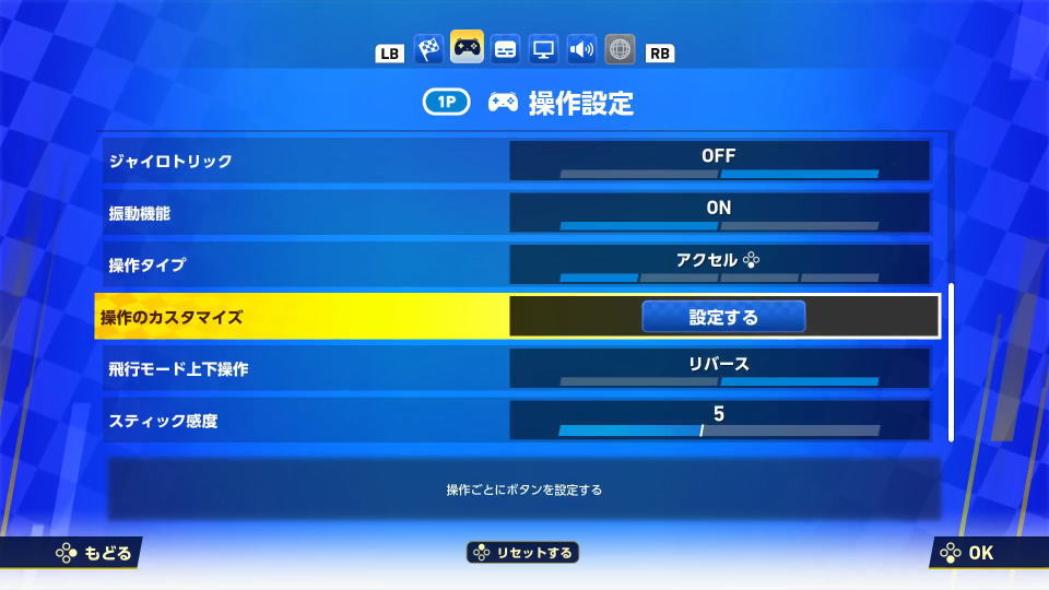 ソニックレーシング クロスワールドの「コントローラー設定」です。