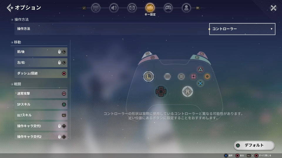 | コントローラー設定 | Xbox | PlayStation |
