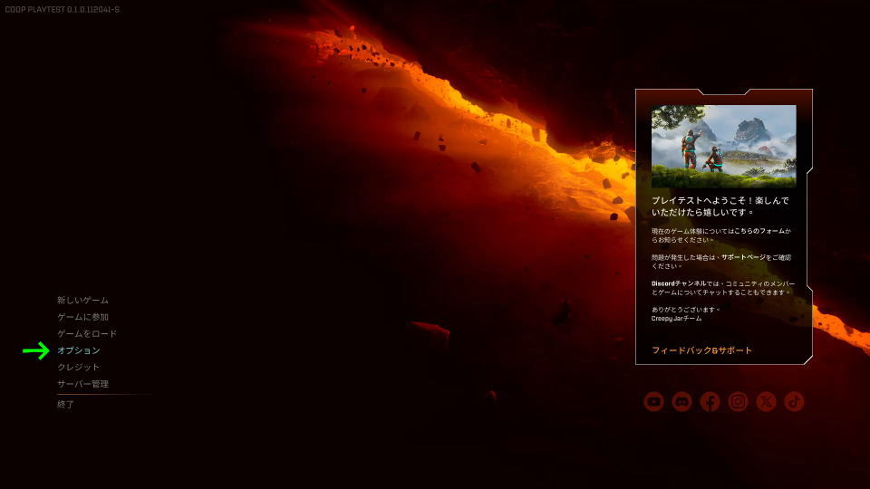 StarRuptureの操作を確認するには、タイトルメニューから「オプション」に進みます。