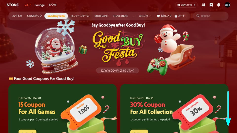 STOVEのクーポンを貰うには、例として「2025 Good Buy Festa」にアクセスします。