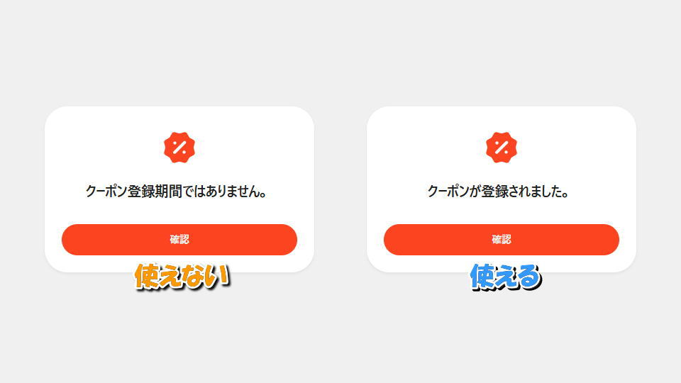このとき『クーポン登録期間ではありません』と表示されたら、そのクーポンは有効期限外です。