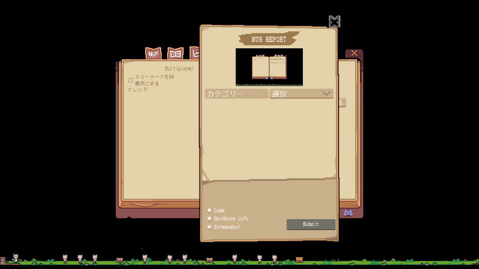 5番目の「バグレポート」では、任意のカテゴリーを選択してバグの報告が可能です。