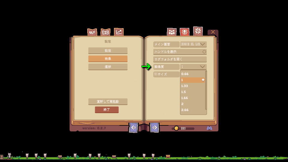 ゲーム画面のサイズ変更