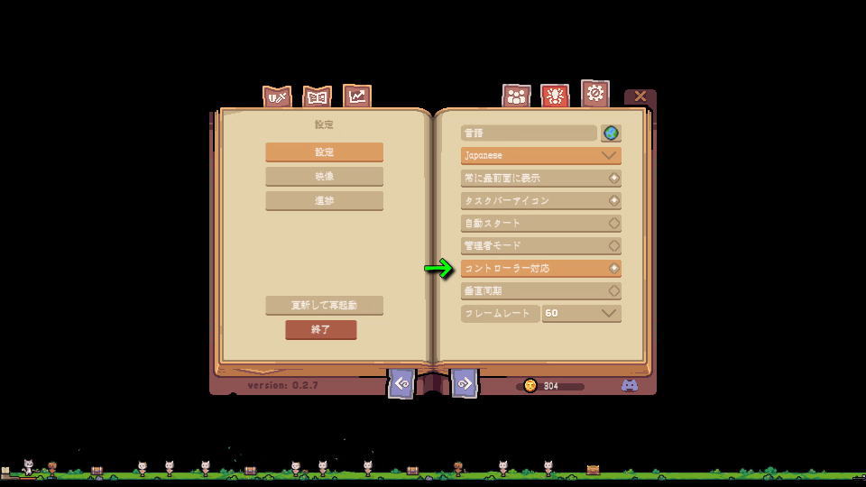 Tap Tap Lootをコントローラーに対応させるには、設定の「設定」タブで「コントローラー対応」を有効化します。