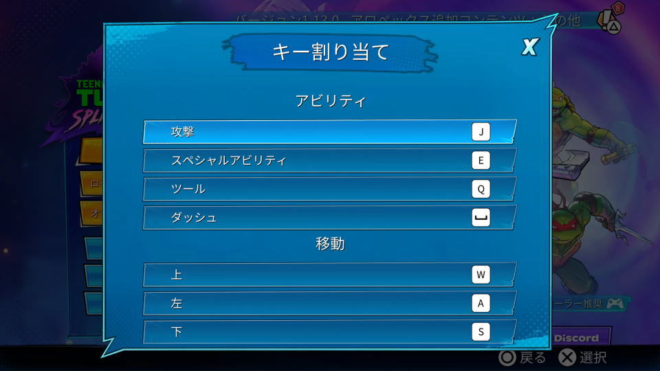 ミュータント タートルズのキーボード設定