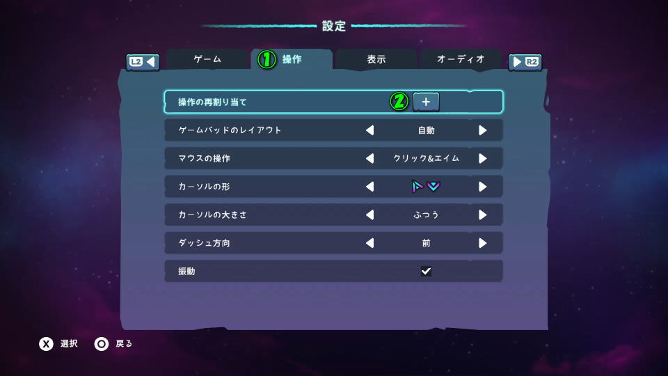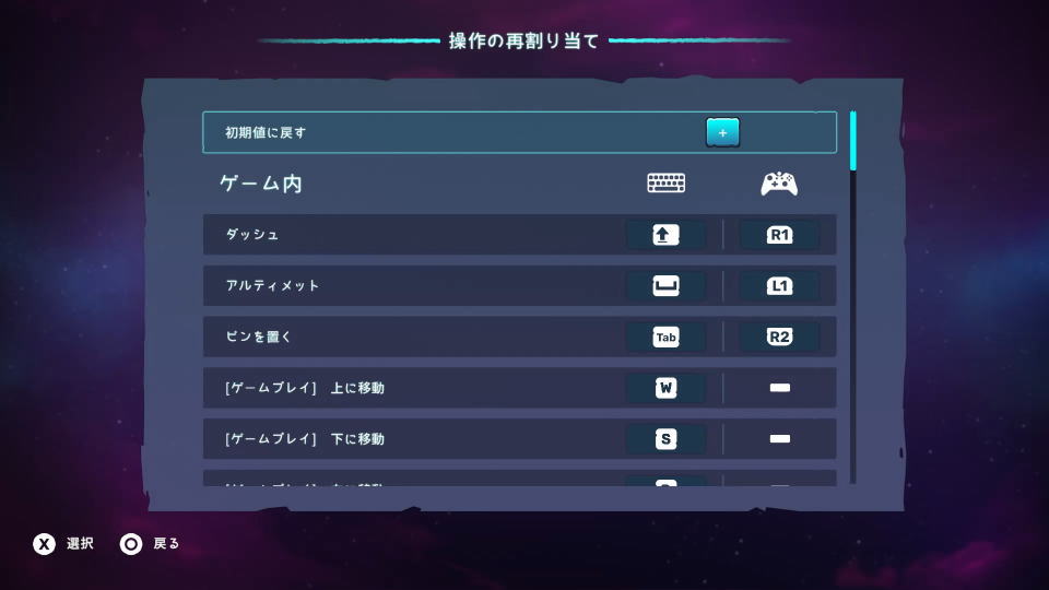 設定に移動したら「操作」から「操作の再割り当て」を選択します。