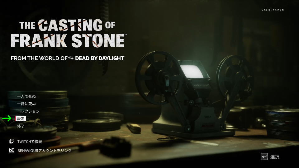 The Casting of Frank Stoneの操作を確認するには、起動後のタイトルメニューから「設定」に進みます。