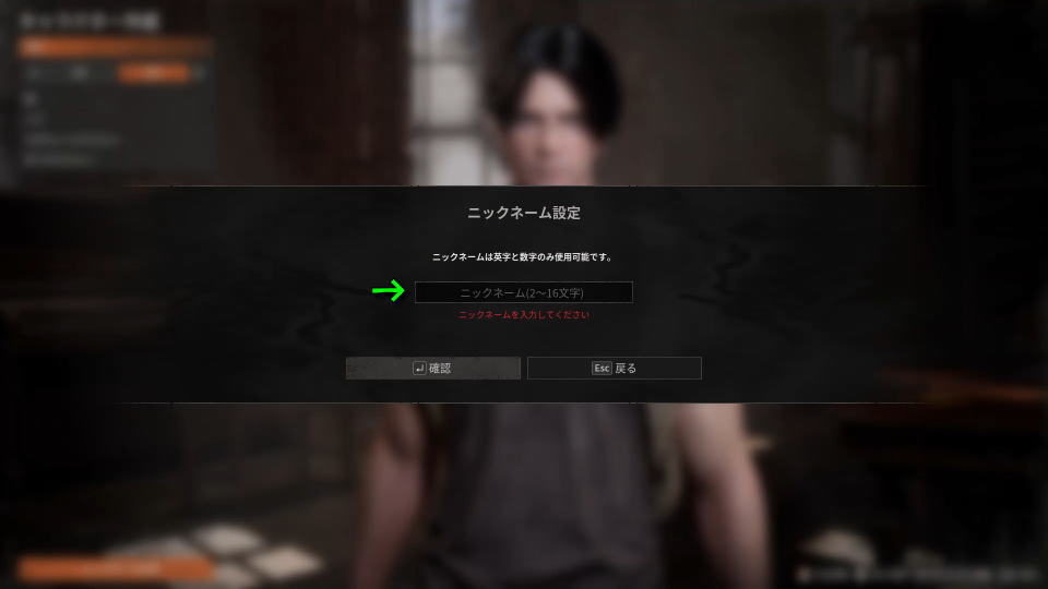 『ニックネーム設定』が表示されたら、2~16文字でニックネームを入力して「確認」を押します。