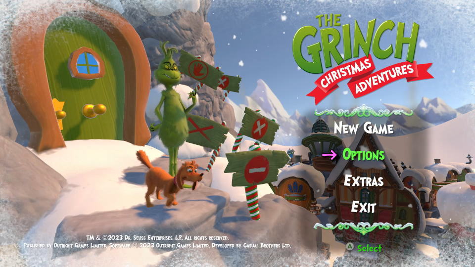 The Grinch: Christmas Adventuresの言語を変更するには、タイトルメニューから「OPTIONS」に進みます。