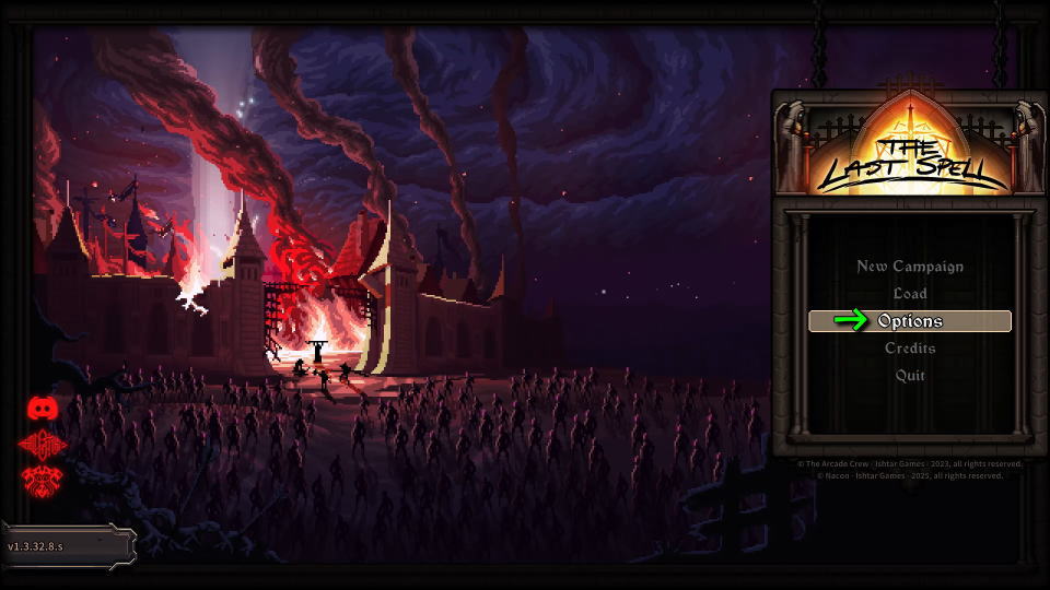 The Last Spellを日本語化するには、タイトルメニューから「Options」に進みます。