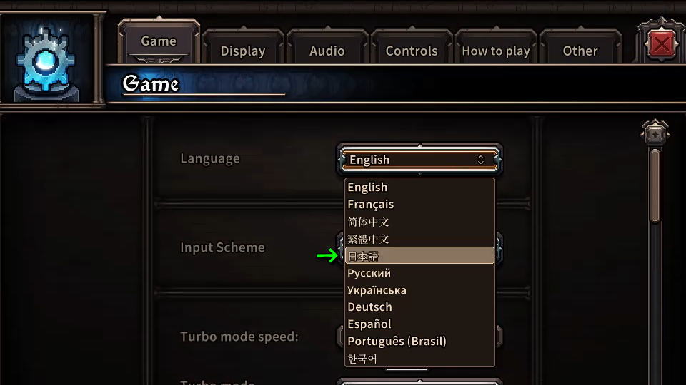 Optionsに移動したら「Game」から「Language」を開きます。