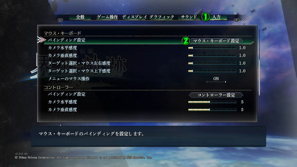 もしコントローラーで操作する場合は、同ページの『バインディング設定』の「コントローラー設定」です。