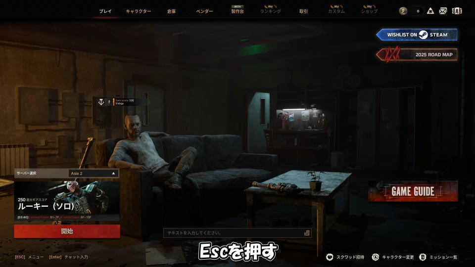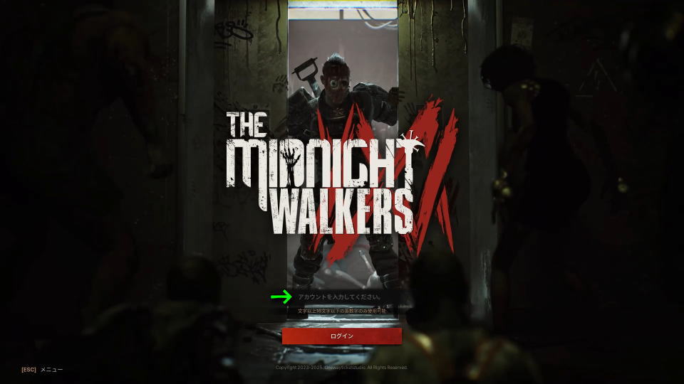 The Midnight Walkersの操作を確認するには、ロビーで「Esc」を押してメニューを開きます。