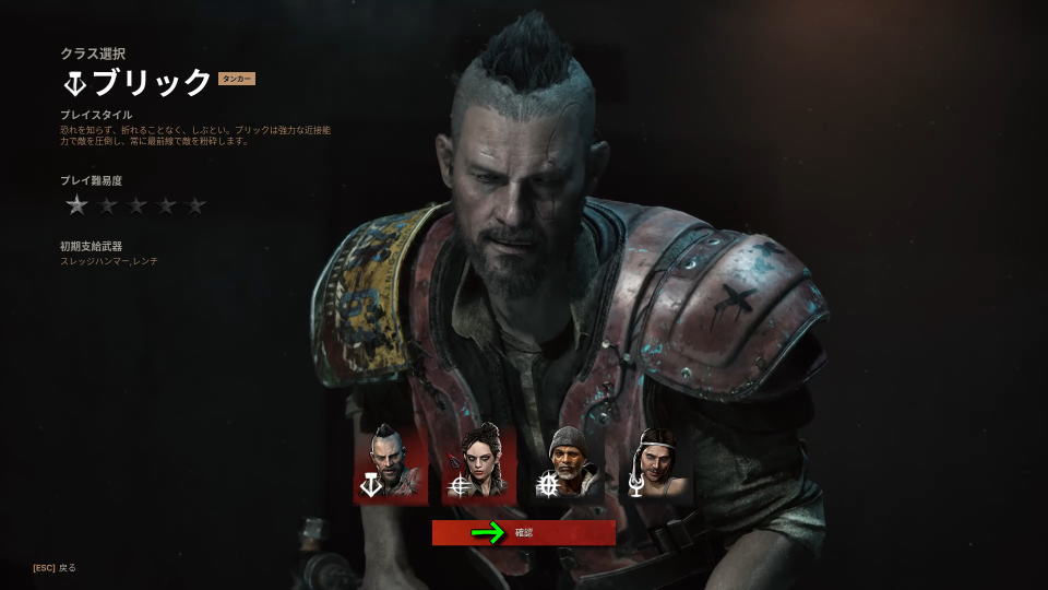 用意されている4つのクラスから任意のクラスを選択して「確認」で確定します。