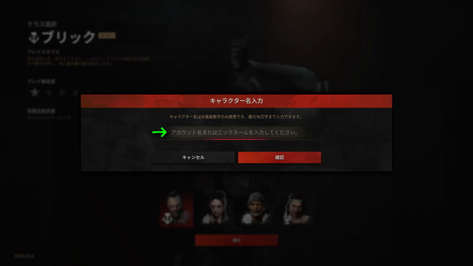『キャラクター名入力』というフォームに、任意でキャラクター名を入力します。