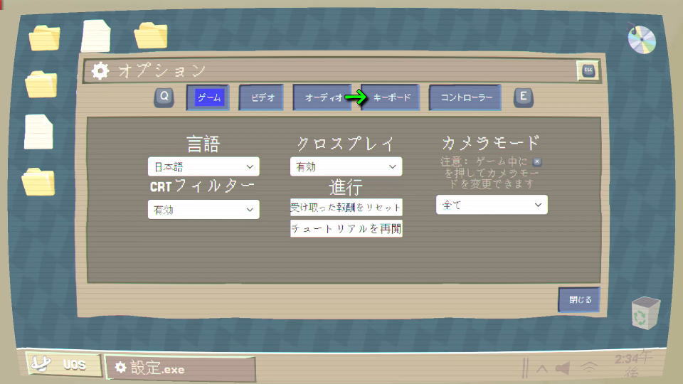オプションに移動したら、操作するデバイスに応じて「キーボード」か「コントローラー」を選択します。