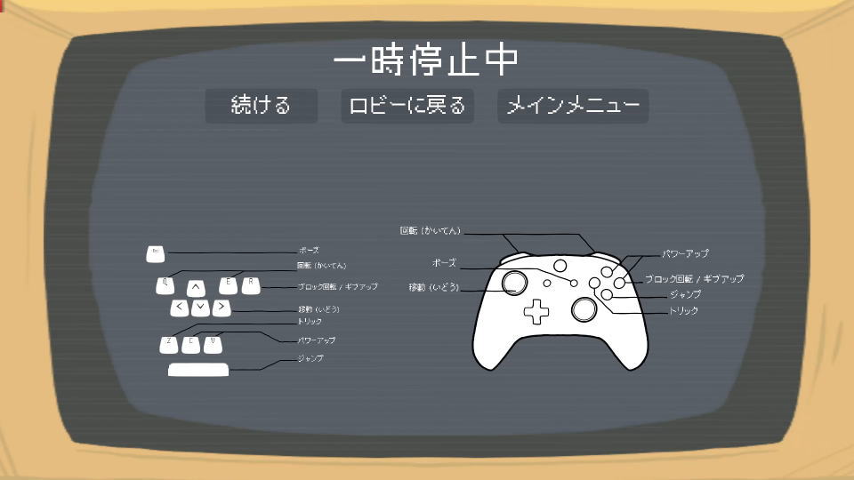これらの操作方法は、ゲーム中に「ポーズ」しても確認できます。