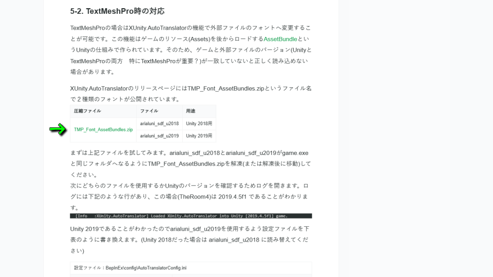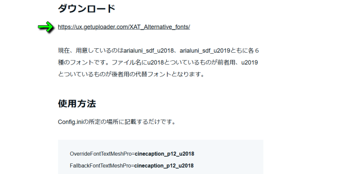 XUnity.AutoTranslator代替フォントに移動したら「ダウンロード」に記載のリンクへ移動します。