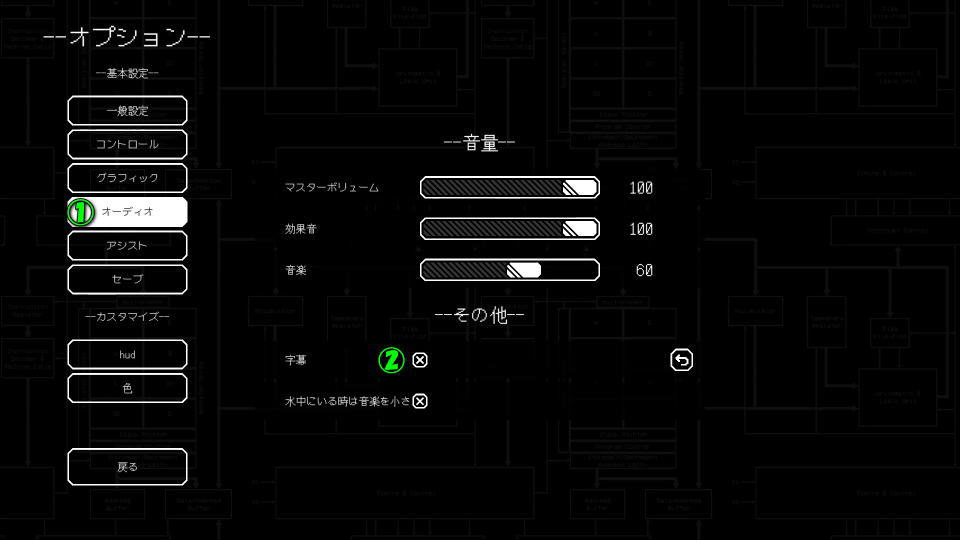 ULTRAKILLで日本語字幕を有効化するには、オプションの「オーディオ」にある「字幕」をオンにします。