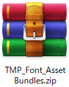 ダウンロードした「TMP_Font_AssetBundles.zip」を解凍します。