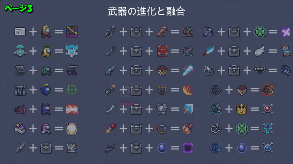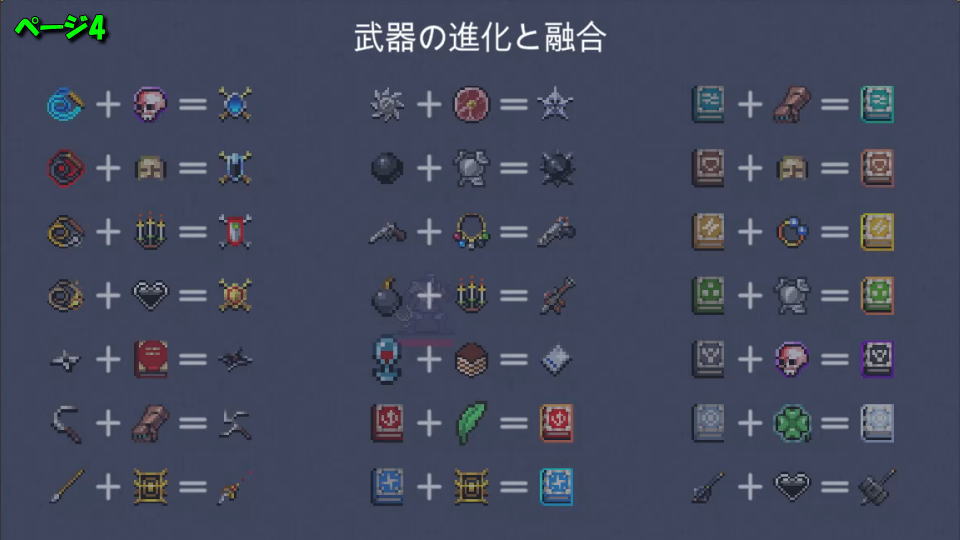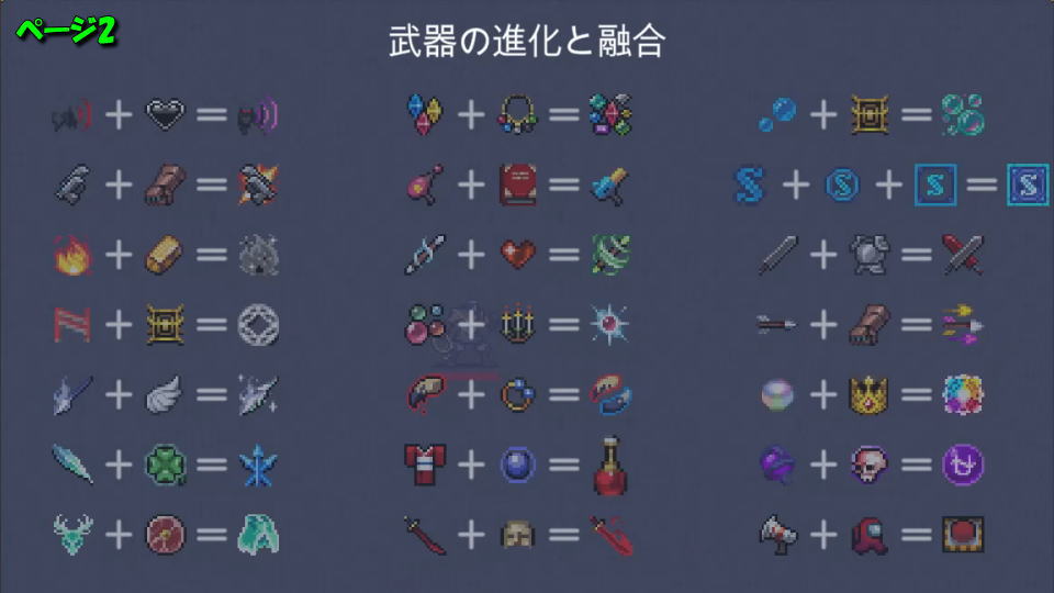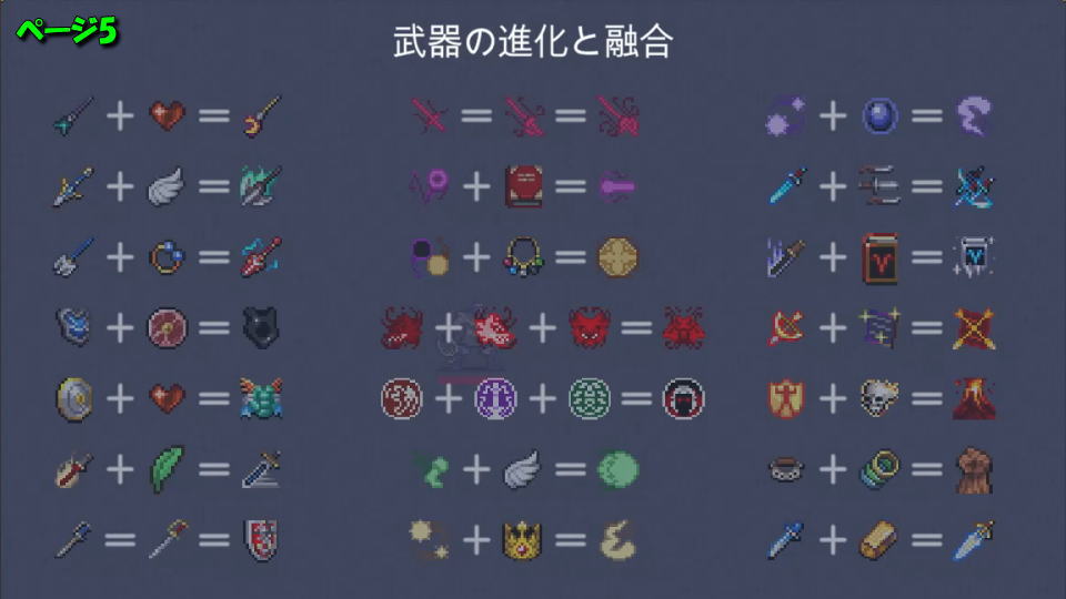 - 補足1:武器と武器とを組み合わせる「融合」も存在する
