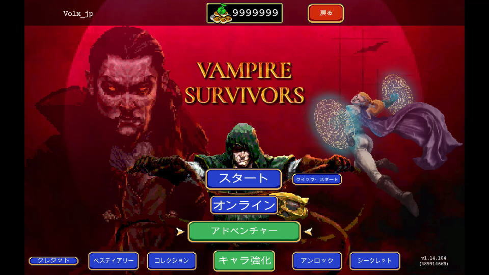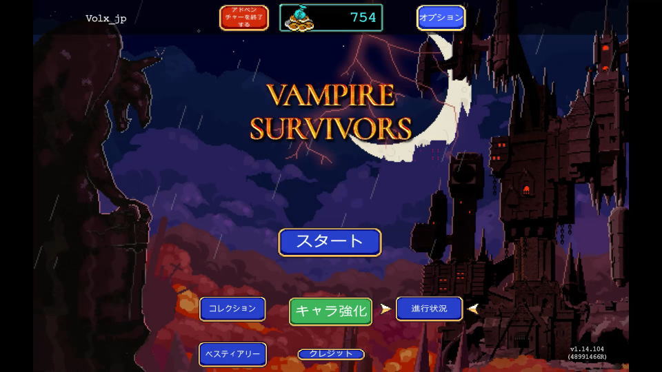 Vampire Survivorsでアドベンチャーモードをプレイするには、まずタイトルメニューから選択して、