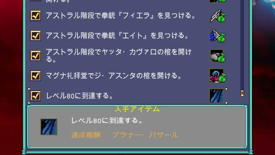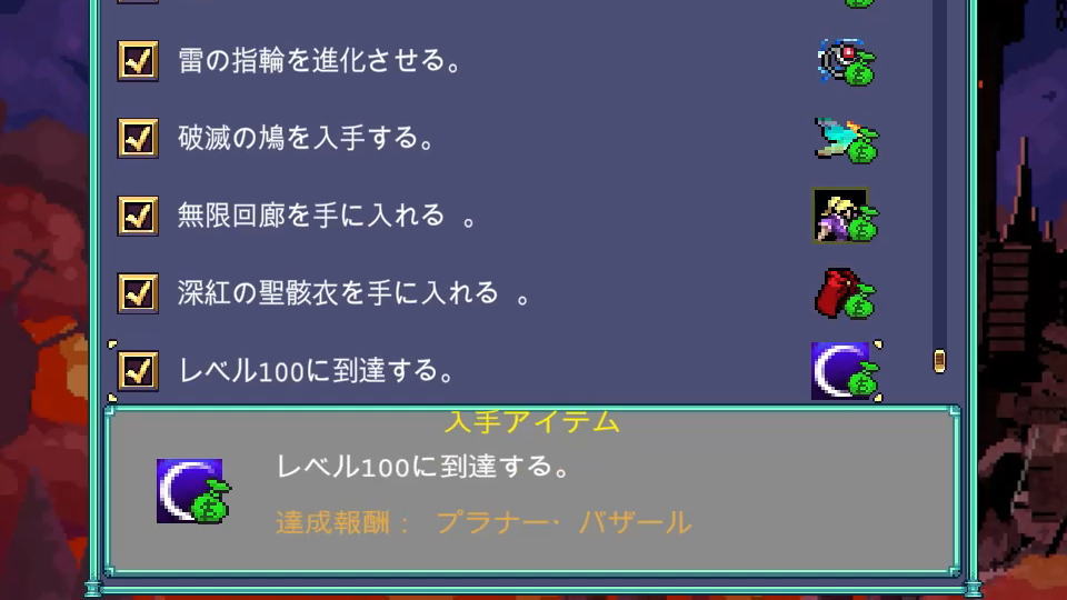 ただし「悪魔城ドラキュラへの頌歌」だけは「レベル100に到達する」という条件に変化しています。
