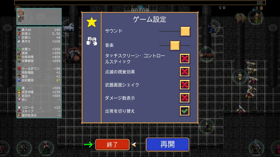 プラナー・バザールには出口がないため、ステージから脱出するにはメニューの「オプション」から、