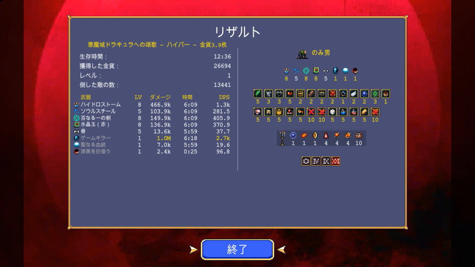 こちらがベリガンとギャイボンを解除したゲームのリザルトです。