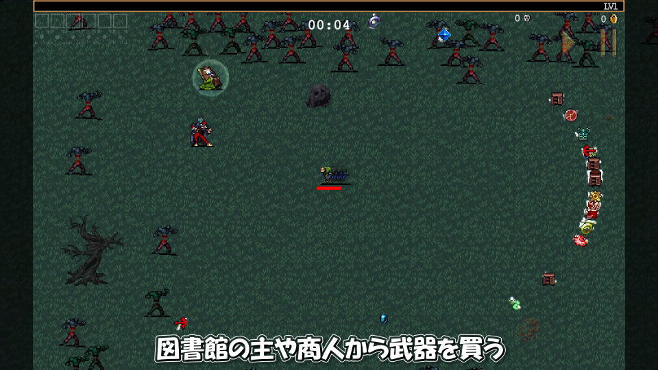 ベリガンとギャイボンの解除するため、ゲームを開始したら「図書館の主」と「商人」から武器を買います。