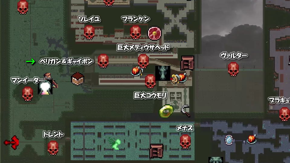 ベリガンとギャイボンはドラキュラ城を右に進み、突き当りを上 ⇒ 左に進んだ城門に近い場所にいます。