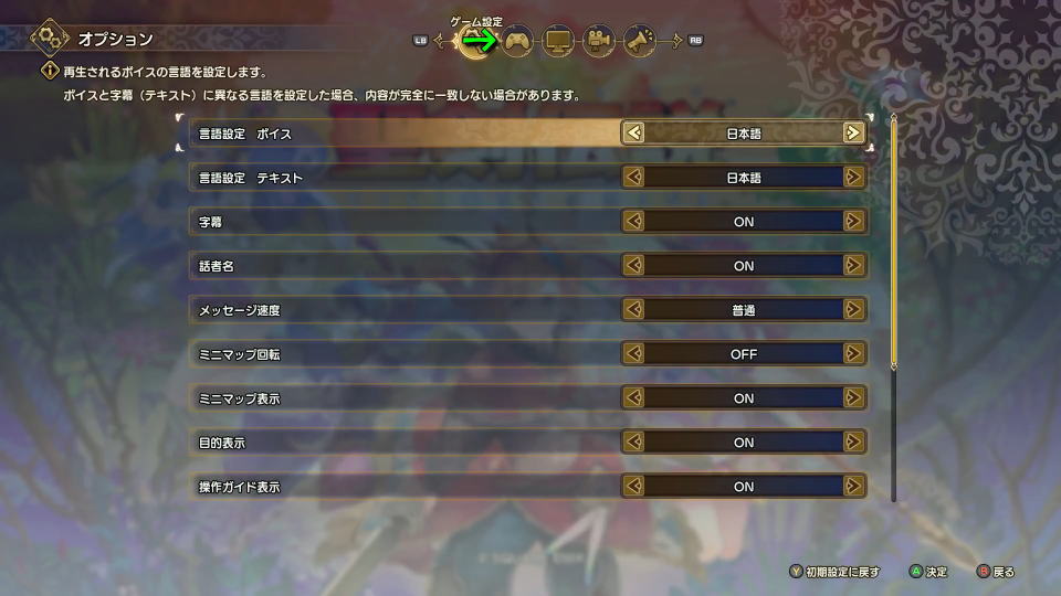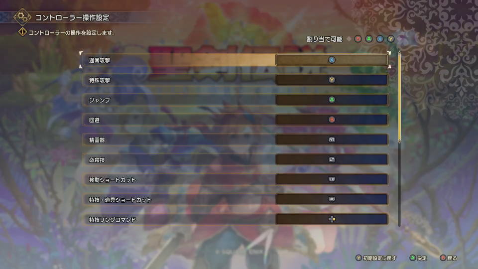 聖剣伝説 VISIONS of MANAの「コントローラー設定」です。