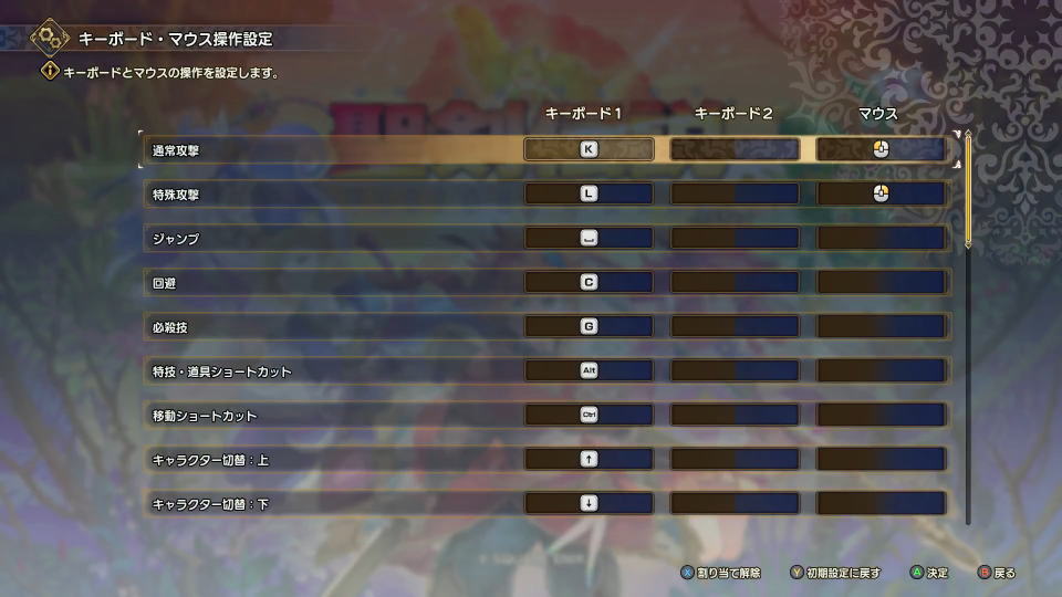 聖剣伝説 VISIONS of MANA:キーボードとコントローラー設定