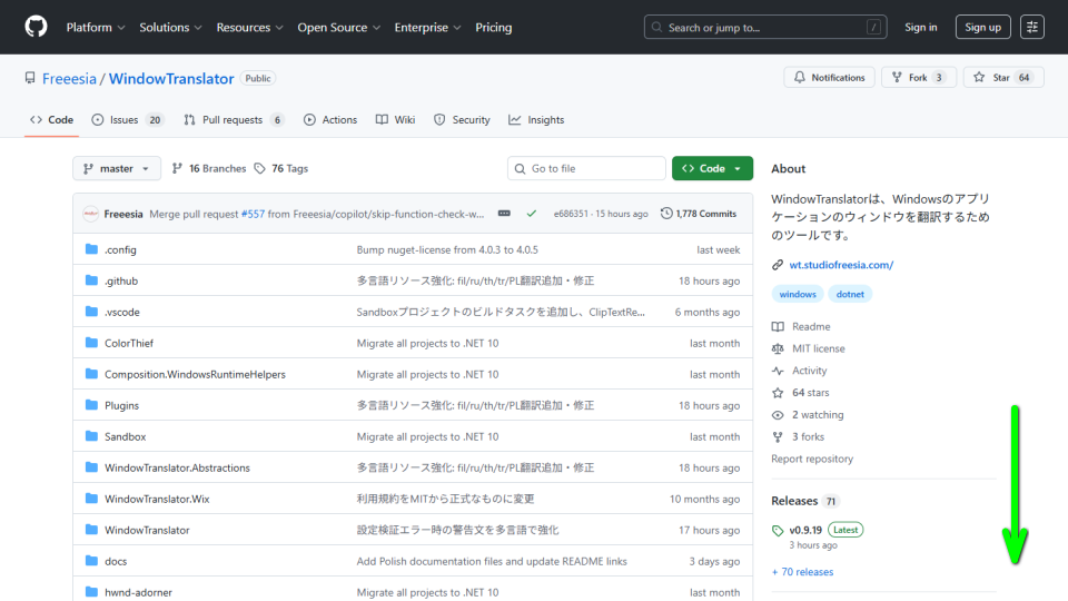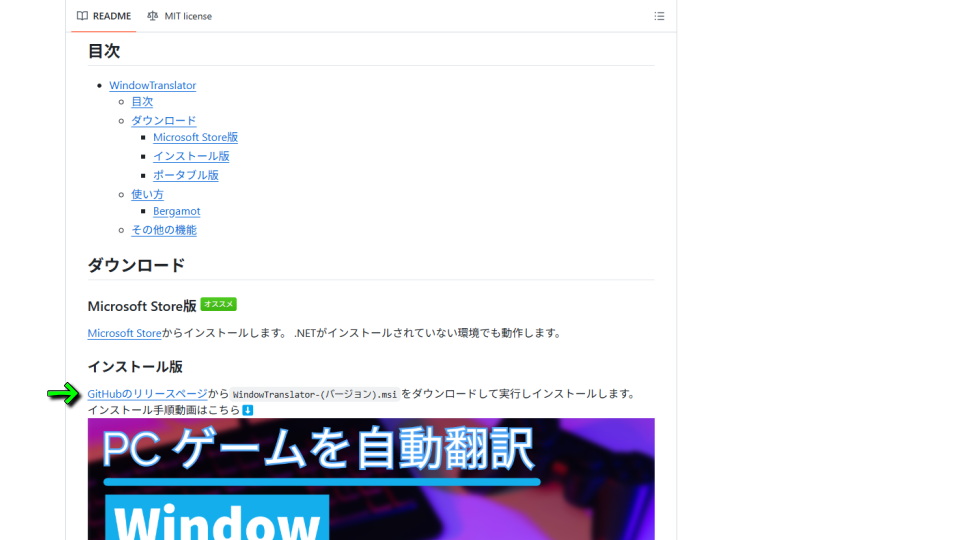 もし何らかの影響でMicrosoft Storeからダウンロードできない場合は「GitHub」にアクセスします。